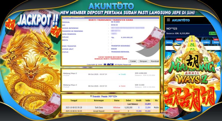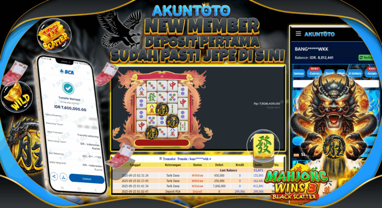 AKUNTOTO JACKPOT SLOT MAHJONG WINS 3 BLACK SCETTER Rp 15.900.000 RABU 01 OKTOBER 2025 Selamat kepada User id : ADU** Telah berhasil mendapatkan kemenangan besar pada permainanSLOT MAHJONG WINS 3 BLACK SCETTER 5 – 10 menit pihak AKUNTOTO sudah melakukan transfer kepada pemilik User id dan dana sudah dapat di cairkan oleh pemenang. Bukti pembayaran…