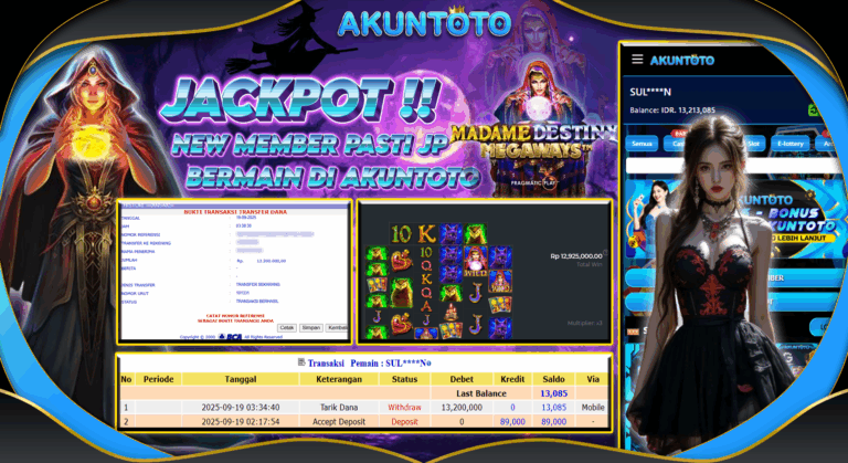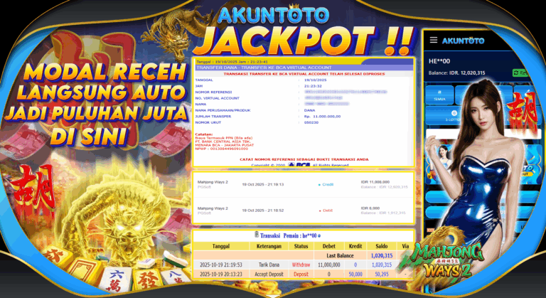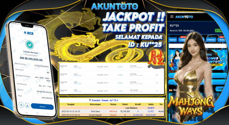 AKUNTOTO JACKPOT SLOT MAHJONG WAYS Rp 85.000.000 SENIN 15 SEPTEMBER 2025 Selamat kepada User id : KU**25 Telah berhasil mendapatkan kemenangan besar pada permainanMAHJONG WAYS 5 – 10 menit pihak AKUNTOTO sudah melakukan transfer kepada pemilik User id dan dana sudah dapat di cairkan oleh pemenang. Bukti pembayaran yang kami berikan merupakan bukti pembayaran yang…