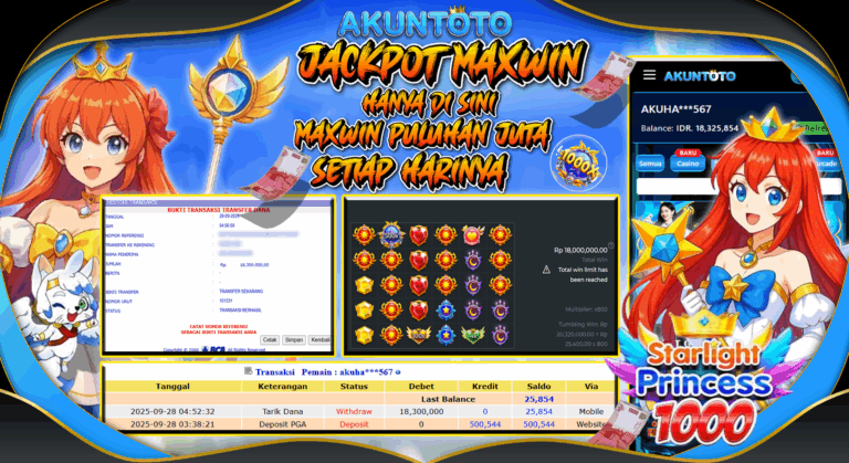 AKUNTOTO JACKPOT STARLIGHT PRINCESS 1000 Rp 18.300.000 MINGGU 28 SEPTEMBER 2025 Selamat kepada User id : AKUHA***567 Telah berhasil mendapatkan kemenangan besar pada permainanSTARLIGHT PRINCESS 1000 5 – 10 menit pihak AKUNTOTO sudah melakukan transfer kepada pemilik User id dan dana sudah dapat di cairkan oleh pemenang. Bukti pembayaran yang kami berikan merupakan bukti pembayaran…