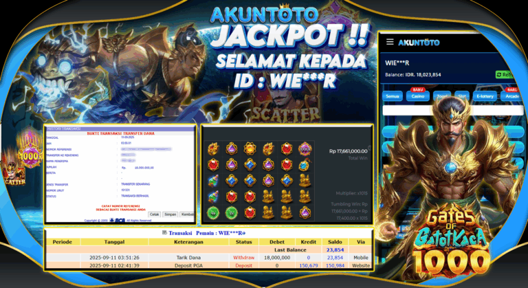 AKUNTOTO JACKPOT SLOT GATES OF GATOT KACA 1000 Rp 18.000.000,- LUNAS