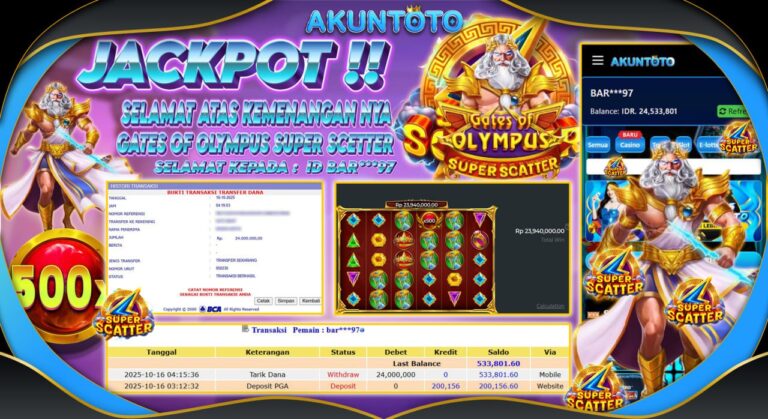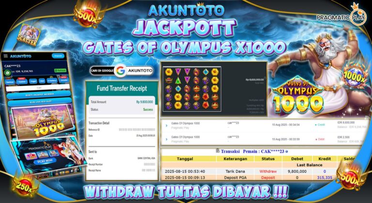 AKUNTOTO JACKPOT SLOT GATES OF OLYMPUS SUPER SCETTER Rp50.000.000 SENIN 10 NOVEMBER 2025 Selamat kepada User id KELANJA***78 Telah berhasil mendapatkan kemenangan besar pada permainan GATES OF OLYMPUS SUPER SCETTER 5 – 10 menit pihak AKUNTOTO sudah melakukan transfer kepada pemilik User id dan dana sudah dapat di cairkan oleh pemenang. Bukti pembayaran yang kami…