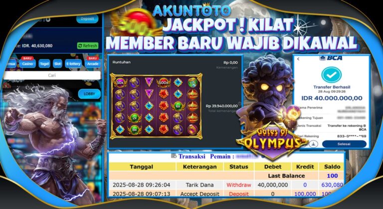 AKUNTOTO JACKPOT SLOT GATES OF OLYMPUS 1000 Rp 39.000.000 JUMAT 12 SEPTEMBER 2025 Selamat kepada User id : ME***N Telah berhasil mendapatkan kemenangan besar pada permainanGATES OF OLYMPUS 1000 5 – 10 menit pihak AKUNTOTO sudah melakukan transfer kepada pemilik User id dan dana sudah dapat di cairkan oleh pemenang. Bukti pembayaran yang kami berikan…
