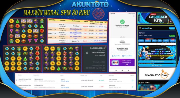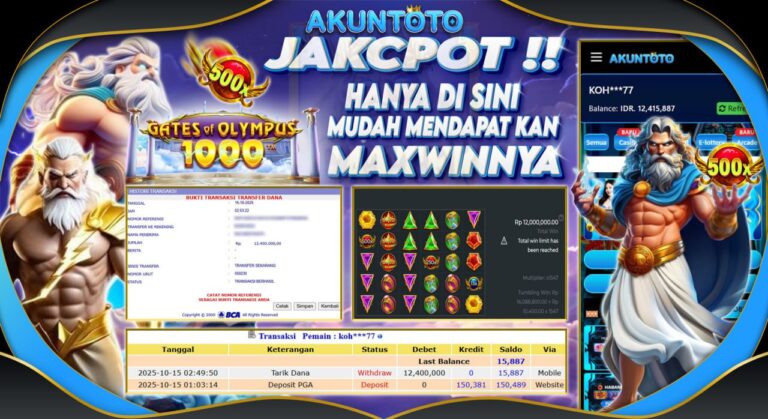 AKUNTOTO JACKPOT SLOT GATES OF OLYMPUS 1000 Rp 12.000.000 MINGGU 14 SEPTEMBER 2025 Selamat kepada User id : TOP*** Telah berhasil mendapatkan kemenangan besar pada permainanGATES OF OLYMPUS 1000 5 – 10 menit pihak AKUNTOTO sudah melakukan transfer kepada pemilik User id dan dana sudah dapat di cairkan oleh pemenang. Bukti pembayaran yang kami berikan…