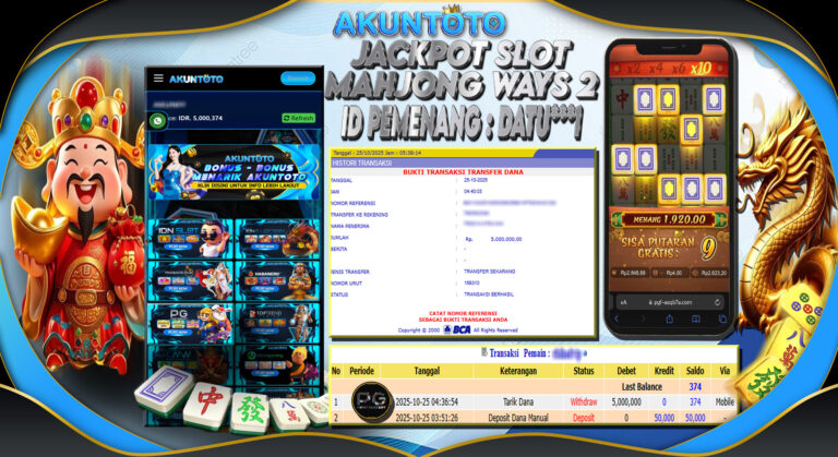 AKUNTOTO JACKPOT SLOT MAHJONG WASY 2 Rp5.000.000 SBTU 25 OKTOBER 2025 Selamat kepada User id DATU***1 : Telah berhasil mendapatkan kemenangan besar pada permainan MAHJONG WASY 2 5 – 10 menit pihak AKUNTOTO sudah melakukan transfer kepada pemilik User id dan dana sudah dapat di cairkan oleh pemenang. Bukti pembayaran yang kami berikan merupakan bukti…