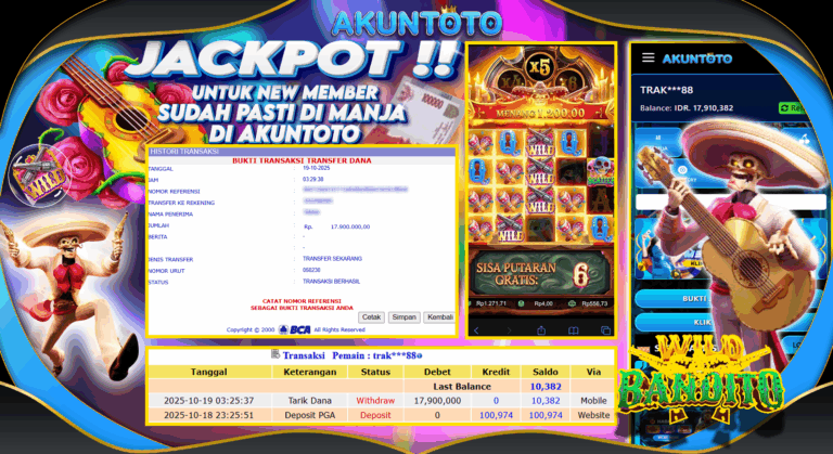 AKUNTOTO JACKPOT SLOT WILD BANDITO Rp17.900.000,- LUNAS