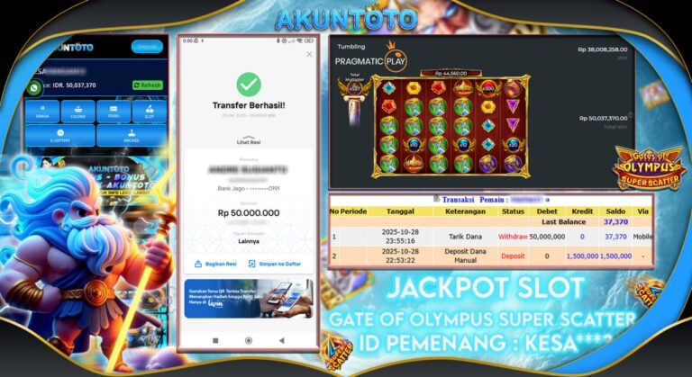 AKUNTOTO JACKPOT SLOT GATE OF OLYMPUS SUPER SCETTER Rp50.000.000 RABU 29 OKTOBER 2025 Selamat kepada User id KESA***3: Telah berhasil mendapatkan kemenangan besar pada permainanGATE OF OLYMPUS SUPER SCETTER 5 – 10 menit pihak AKUNTOTO sudah melakukan transfer kepada pemilik User id dan dana sudah dapat di cairkan oleh pemenang. Bukti pembayaran yang kami berikan…