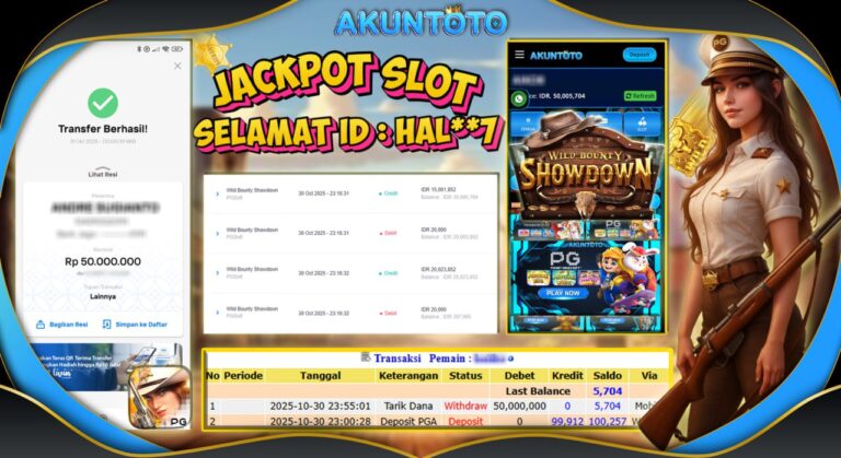 AKUNTOTO JACKPOT SLOT WILD BOUNTY SHOWDOWN Rp50.000.000 JUMAT 31 OKTOBER 2025 Selamat kepada User id HAL***7 Telah berhasil mendapatkan kemenangan besar pada permainanWILD BOUNTY SHOWDOWN 5 – 10 menit pihak AKUNTOTO sudah melakukan transfer kepada pemilik User id dan dana sudah dapat di cairkan oleh pemenang. Bukti pembayaran yang kami berikan merupakan bukti pembayaran yang…
