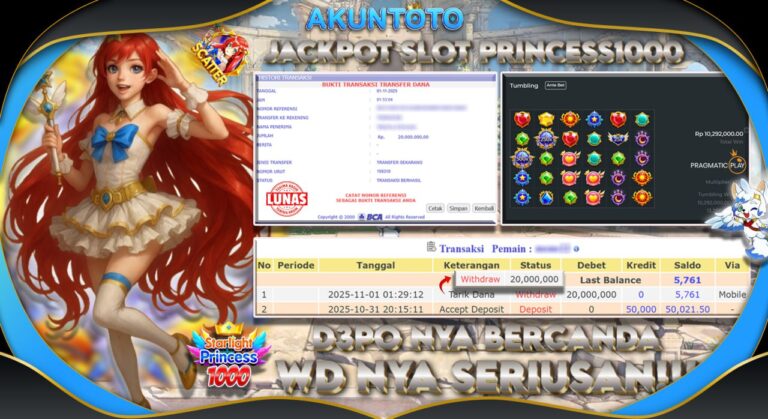 AKUNTOTO JACKPOT SLOT STARLIGHT PRINCESS 1000 Rp20.000.000 SABTUN 01 NOVEMBER 2025 Selamat kepada User id MAM***2 Telah berhasil mendapatkan kemenangan besar pada permainanSTARLIGHT PRINCESS 1000 5 – 10 menit pihak AKUNTOTO sudah melakukan transfer kepada pemilik User id dan dana sudah dapat di cairkan oleh pemenang. Bukti pembayaran yang kami berikan merupakan bukti pembayaran yang…