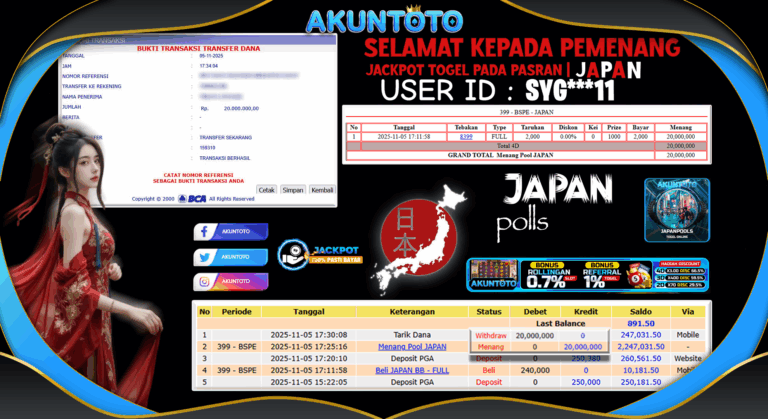 JACKPOT TOGEL PADA PASARAN JAPAN Rp20.000.000 KAMIS 06 NOVEMBER 2025 Selamat kepada User id SYG***11 Telah berhasil mendapatkan kemenangan besar pada permainanJACKPOT TOGEL PADA PASARAN JAPAN 5 – 10 menit pihak AKUNTOTO sudah melakukan transfer kepada pemilik User id dan dana sudah dapat di cairkan oleh pemenang. Bukti pembayaran yang kami berikan merupakan bukti pembayaran…