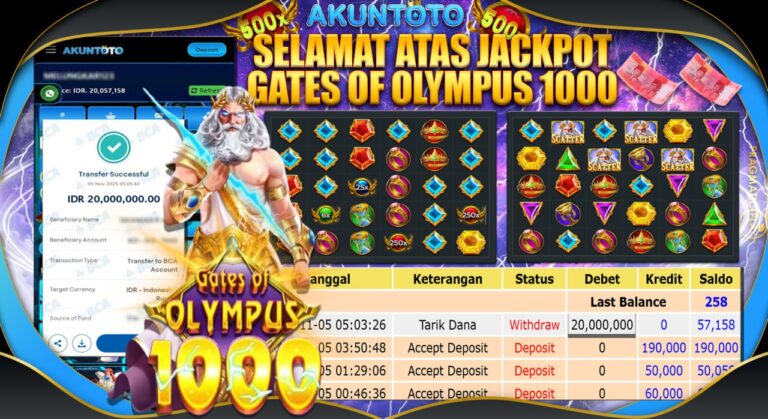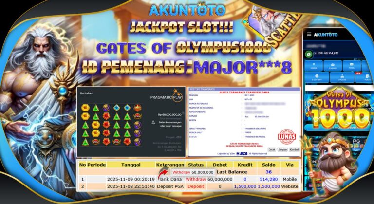 AKUNTOTO JACKPOT SLOT GATES OF OLYMPUS 1000 Rp60.000.000 MINGGU 09 NOVEMBER 2025 Selamat kepada User id MAJOR***8 Telah berhasil mendapatkan kemenangan besar pada permainan GATES OF OLYMPUS 1000 5 – 10 menit pihak AKUNTOTO sudah melakukan transfer kepada pemilik User id dan dana sudah dapat di cairkan oleh pemenang. Bukti pembayaran yang kami berikan merupakan…