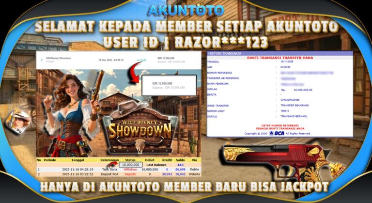 AKUNTOTO JACKPOT SLOT WILD BOUNTY SHOWDOWN Rp 27.000.000 RABU 17 SEPTEMBER 2025 Selamat kepada User id : qur***ng Telah berhasil mendapatkan kemenangan besar pada permainanWILD BOUNTY SHOWDOWN 5 – 10 menit pihak AKUNTOTO sudah melakukan transfer kepada pemilik User id dan dana sudah dapat di cairkan oleh pemenang. Bukti pembayaran yang kami berikan merupakan bukti…