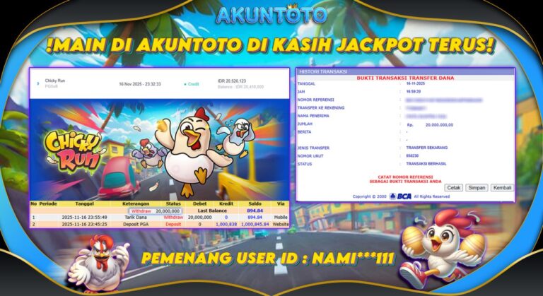 AKUNTOTO JACKPOT SLOT CHICKY RUN Rp20.000.000 SENIN 17 NOVEMBER 2025 Selamat kepada User id NAMI**111 Telah berhasil mendapatkan kemenangan besar pada permainanCHICKY RUN 5 – 10 menit pihak AKUNTOTO sudah melakukan transfer kepada pemilik User id dan dana sudah dapat di cairkan oleh pemenang. Bukti pembayaran yang kami berikan merupakan bukti pembayaran yang SAH /…