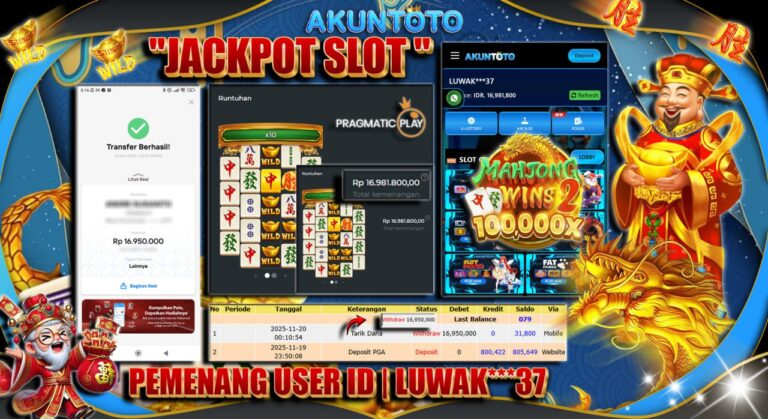AKUNTOTO JACKPOT SLOT MAHJONG WINS BONUS Rp 27.600.000 JUMAT 05 SEPTEMBER 2025 Selamat kepada User id : MAH***G01 : Telah berhasil mendapatkan kemenangan besar pada permainanMAHJONG WINS BONUS Rp 27.600.000 5 – 10 menit pihak AKUNTOTO sudah melakukan transfer kepada pemilik User id dan dana sudah dapat di cairkan oleh pemenang. Bukti pembayaran yang kami…