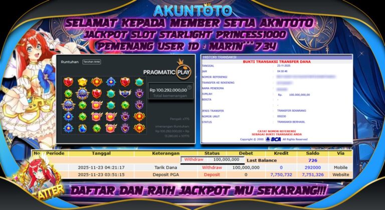 AKUNTOTO JACKPOT STARLIGHT PRINCESS1000 Rp100.000.000 MINGGU 23 NOVEMBER 2025 Selamat kepada User id MARIN***734 Telah berhasil mendapatkan kemenangan besar pada permainanSTARLIGHT PRINCESS1000 5 – 10 menit pihak AKUNTOTO sudah melakukan transfer kepada pemilik User id dan dana sudah dapat di cairkan oleh pemenang. Bukti pembayaran yang kami berikan merupakan bukti pembayaran yang SAH / VALID…