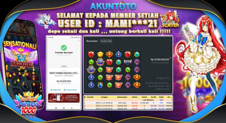 AKUNTOTO JACKPOT SLOT STARLIGHT PRINCESS1000 Rp15.000.000 RABU 12 NOVEMBER 2025 Selamat kepada User id MAMI**21 Telah berhasil mendapatkan kemenangan besar pada permainanSTARLIGHT PRINCESS1000 5 – 10 menit pihak AKUNTOTO sudah melakukan transfer kepada pemilik User id dan dana sudah dapat di cairkan oleh pemenang. Bukti pembayaran yang kami berikan merupakan bukti pembayaran yang SAH /…