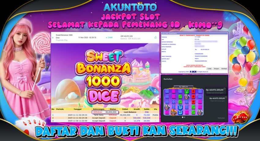 AKUNTOTO JACKPOT SLOT SWEET BONANZA 1000 DICE Rp40.000.000 SELASA 11 NOVEMBER 2025